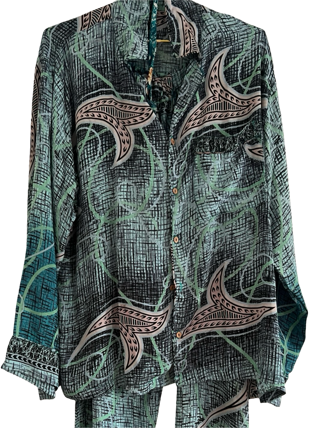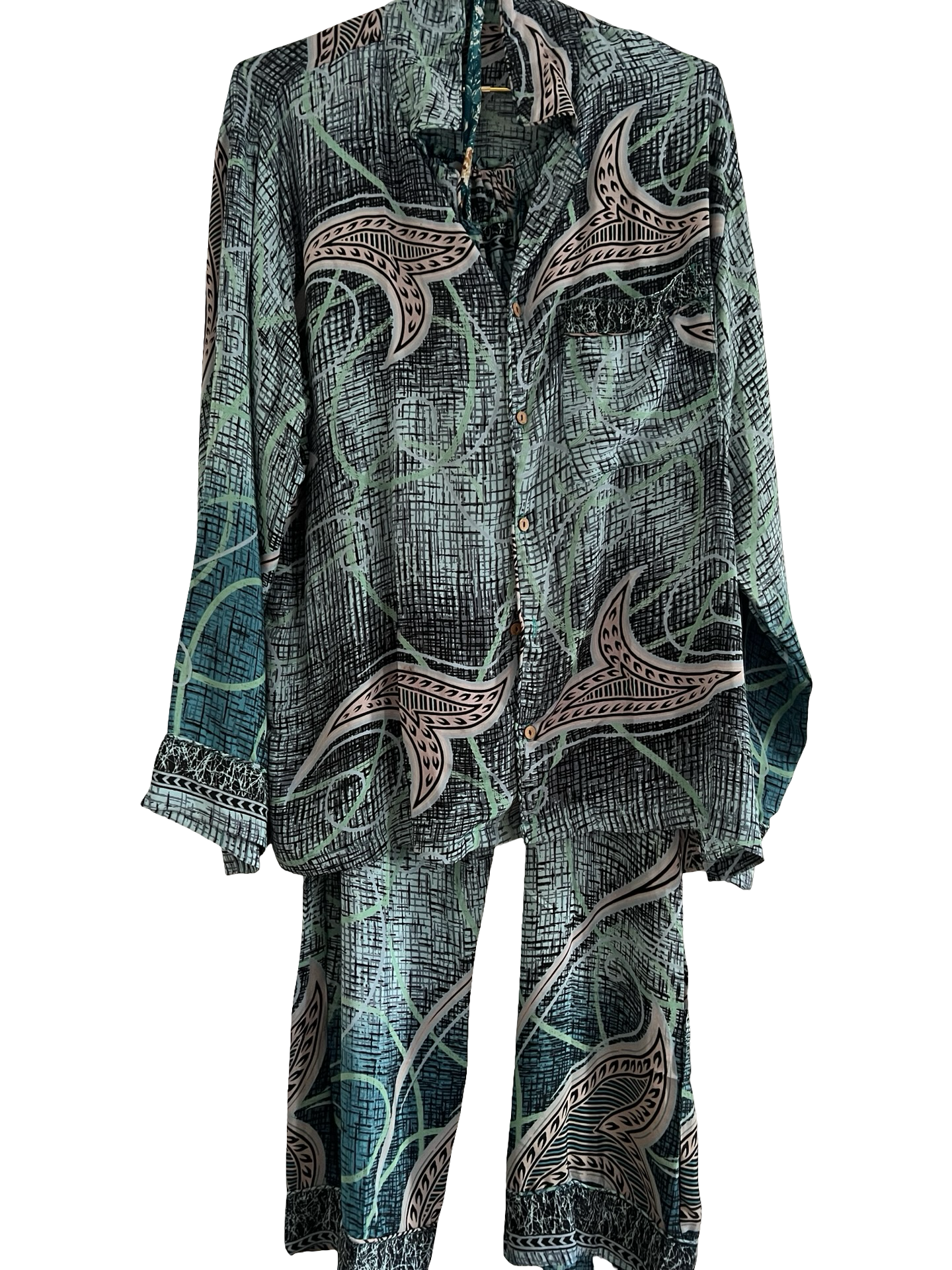 Gorgeous, glamorous Vintage recycled silk from India. Repurposed into modern lounge set or pj set.