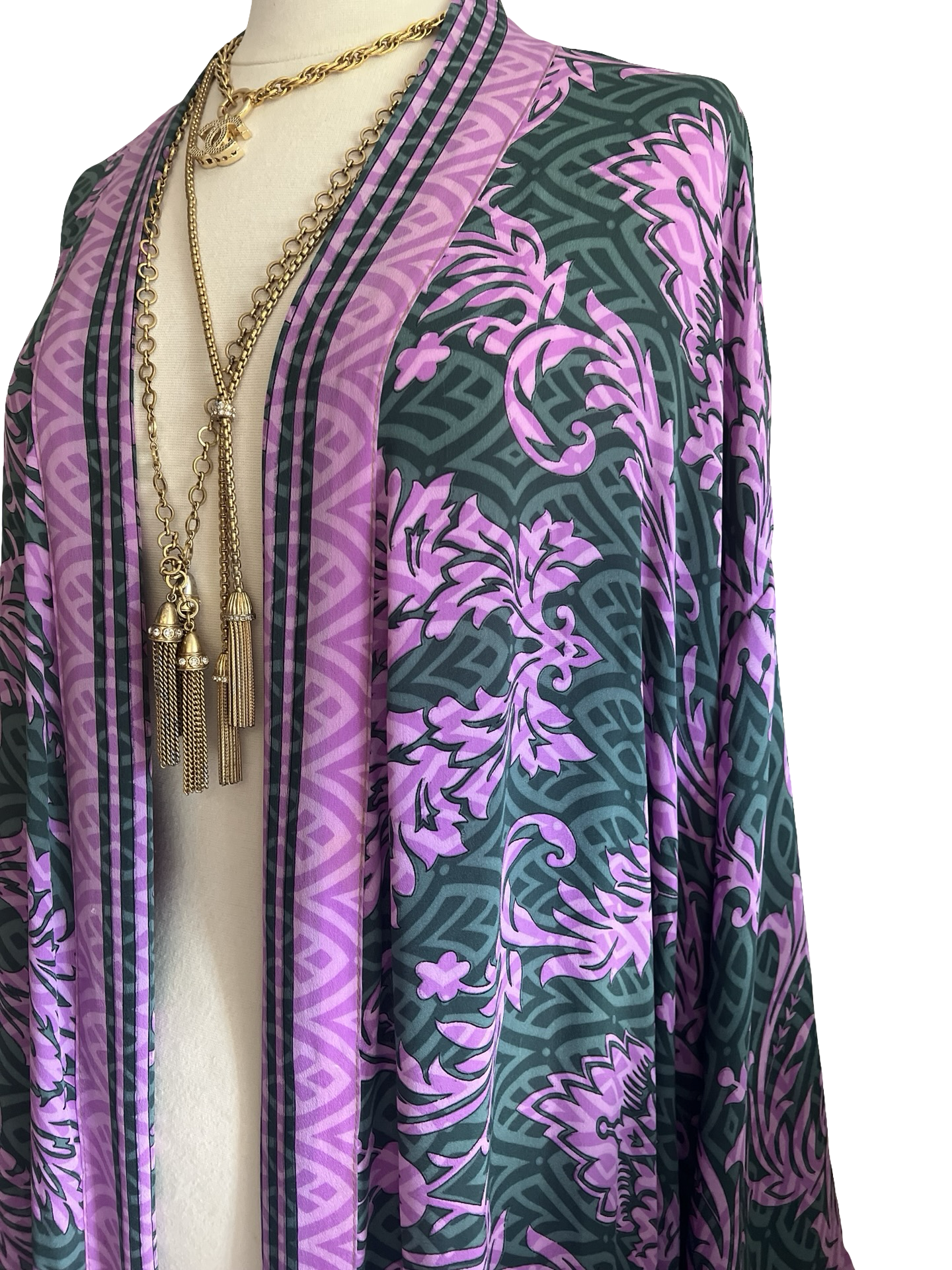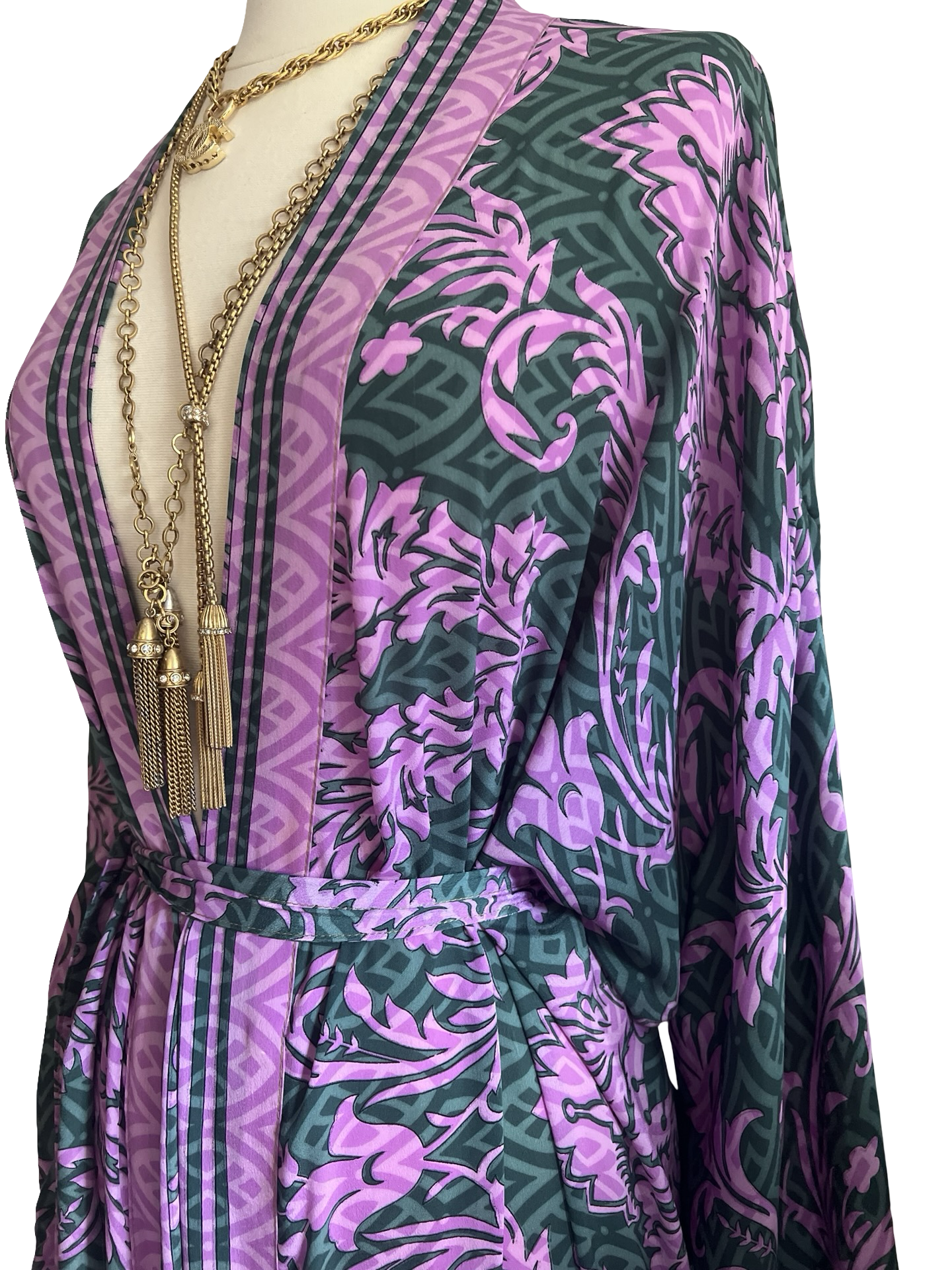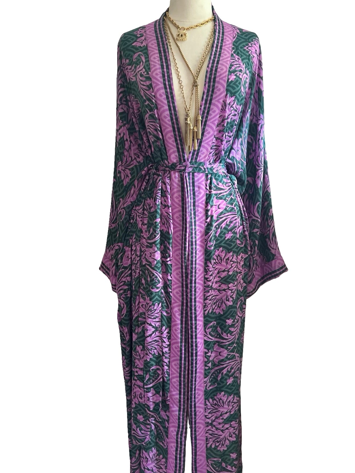 Gorgeous, glamorous Vintage recycled silk from India. Repurposed into modern Kimono inspired Loungewear.