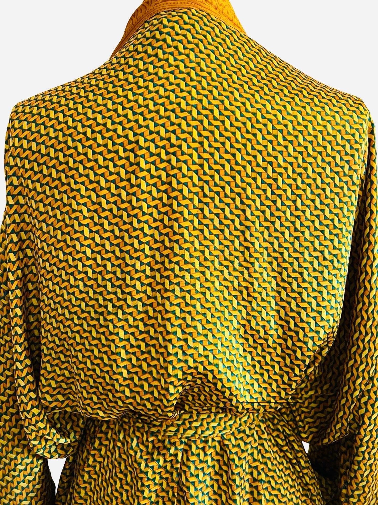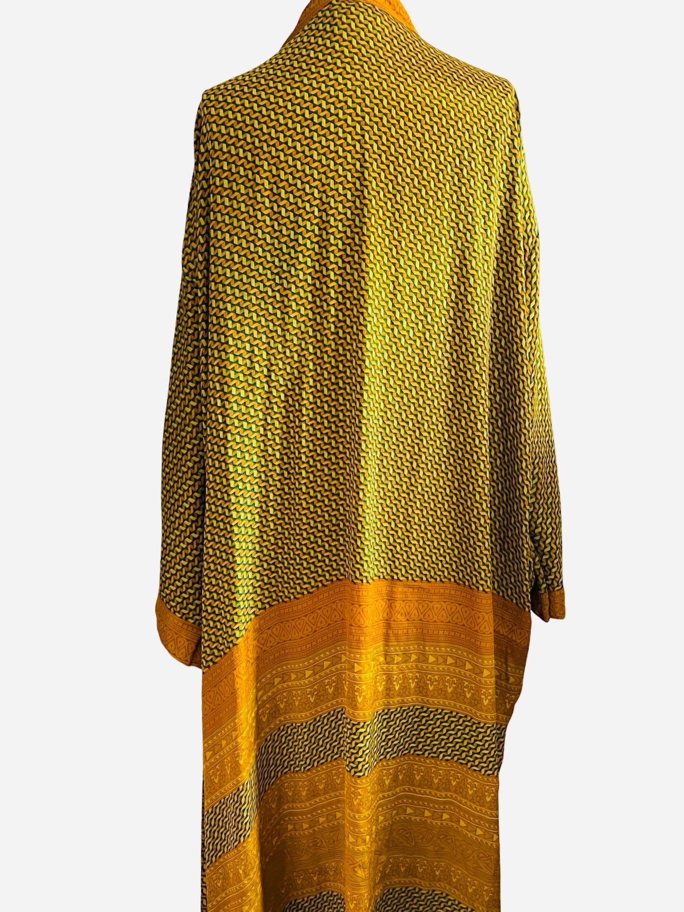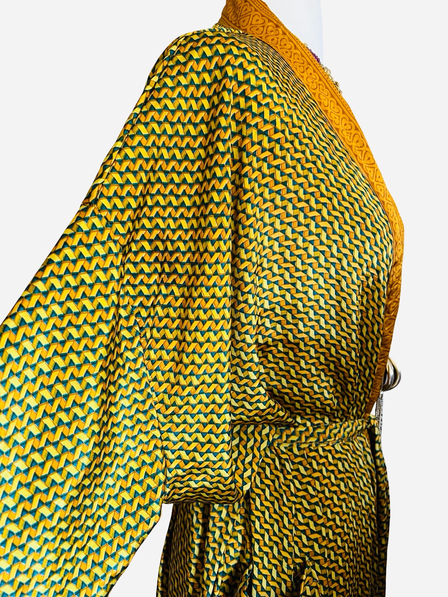 Gorgeous, glamorous Vintage recycled silk from India. Repurposed into modern Kimono inspired Loungewear.