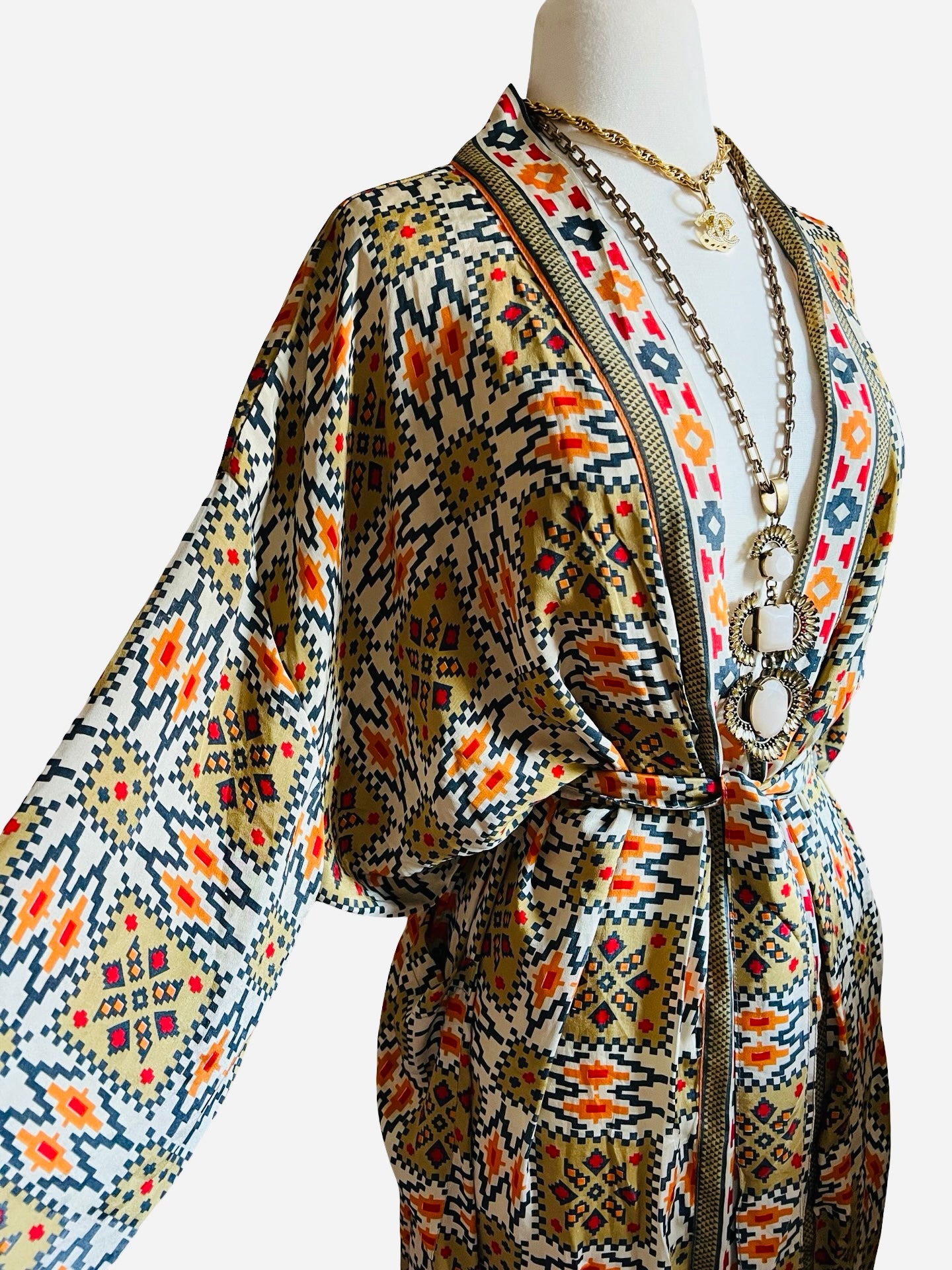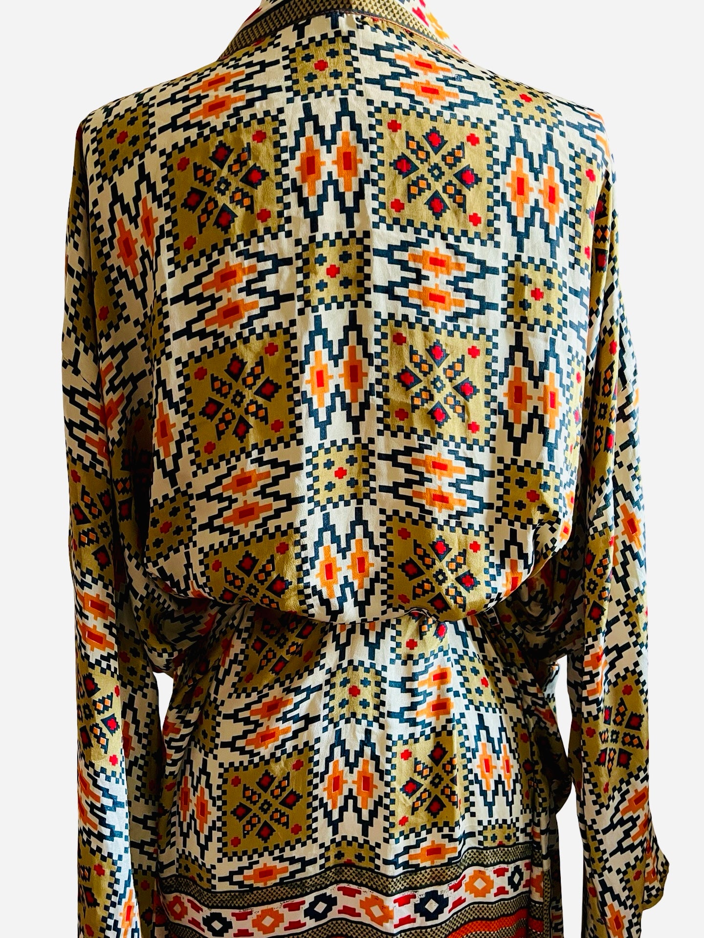 Gorgeous, glamorous Vintage recycled silk from India. Repurposed into modern Kimono inspired Loungewear.