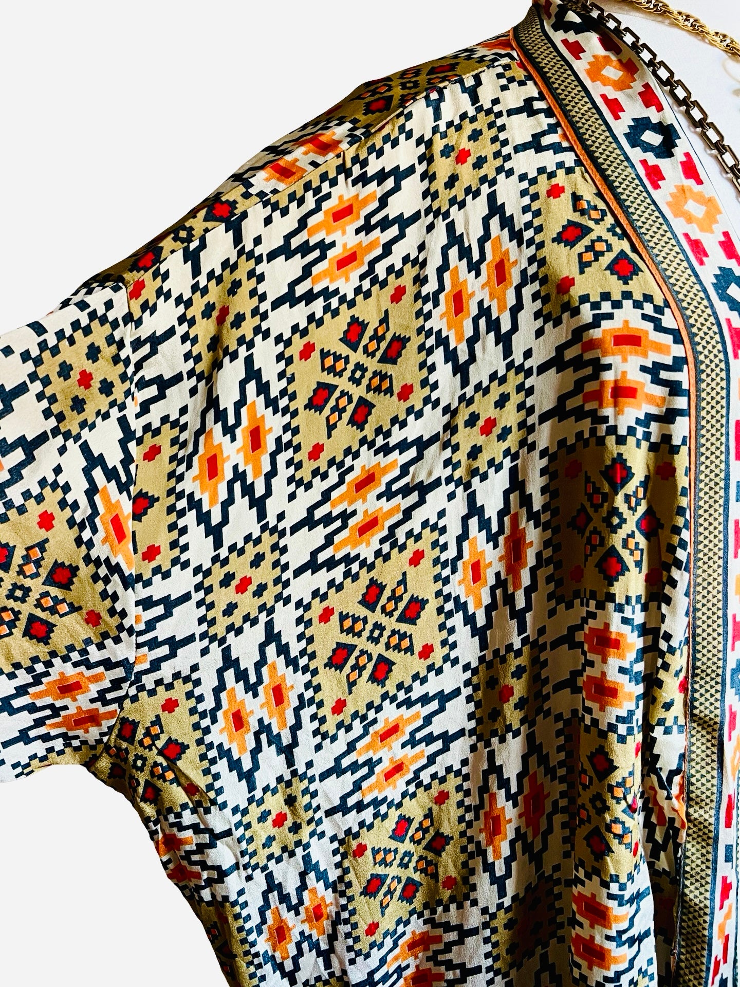 Pair with chic body suit, jeans, or flowy pants. Dresses or just for lounging over a bathing suit or Kaftan. Pockets on both sides. Side slits.