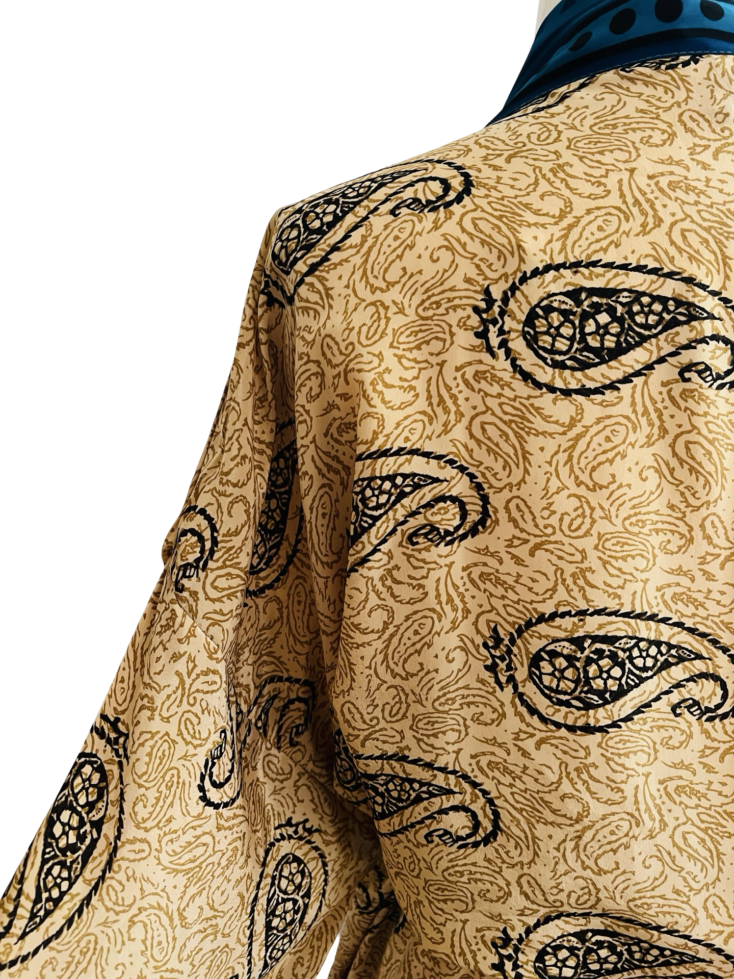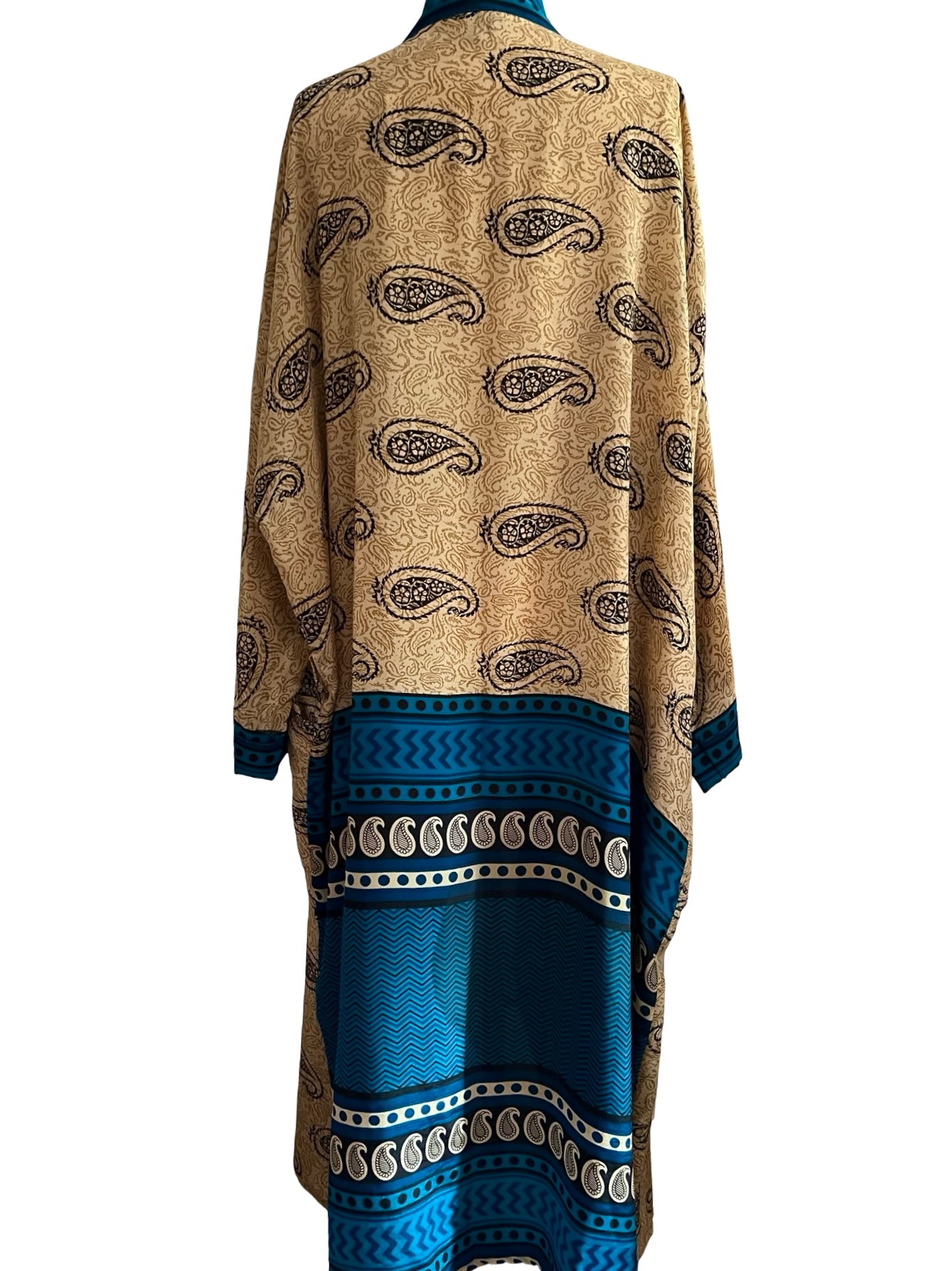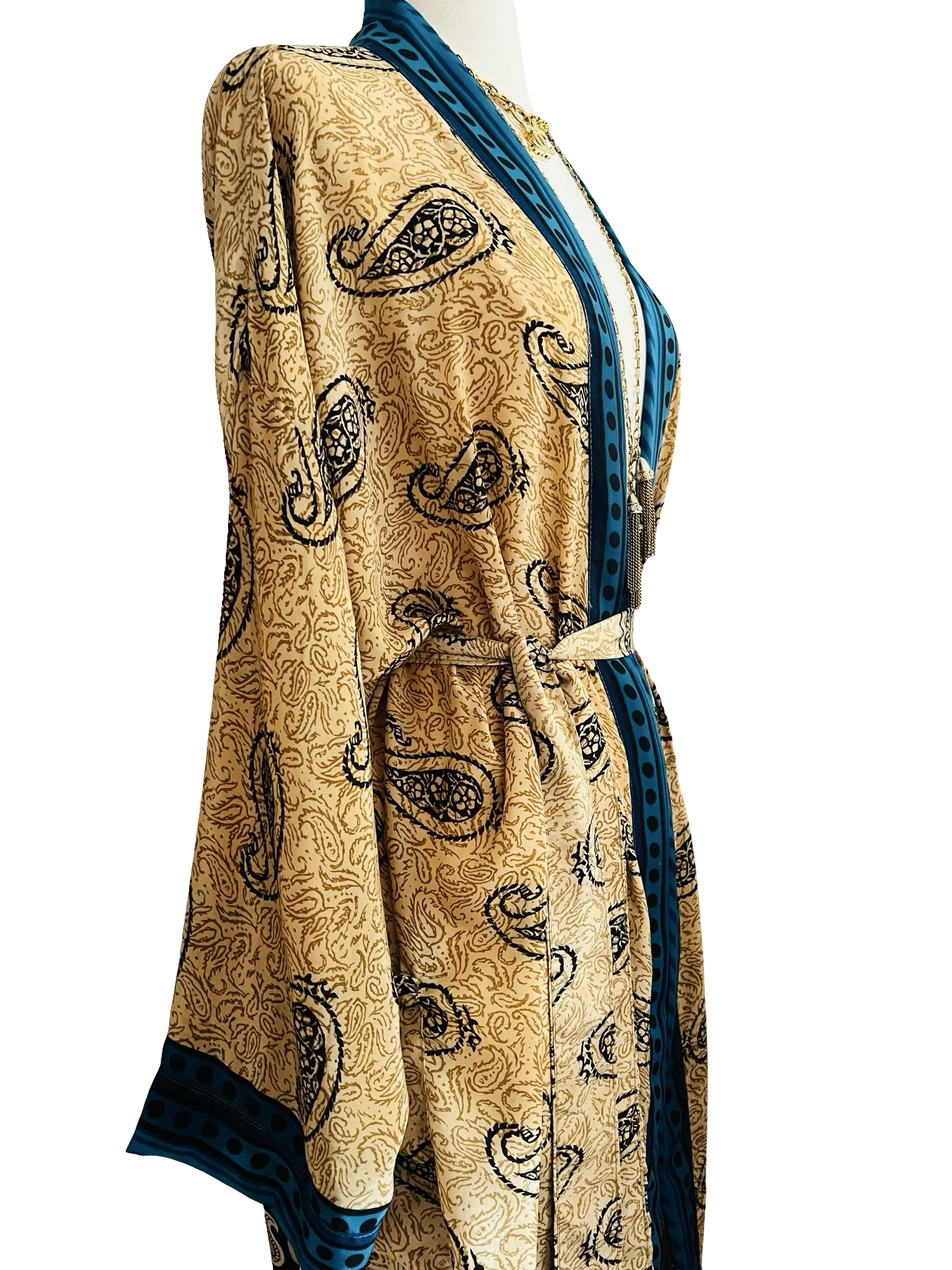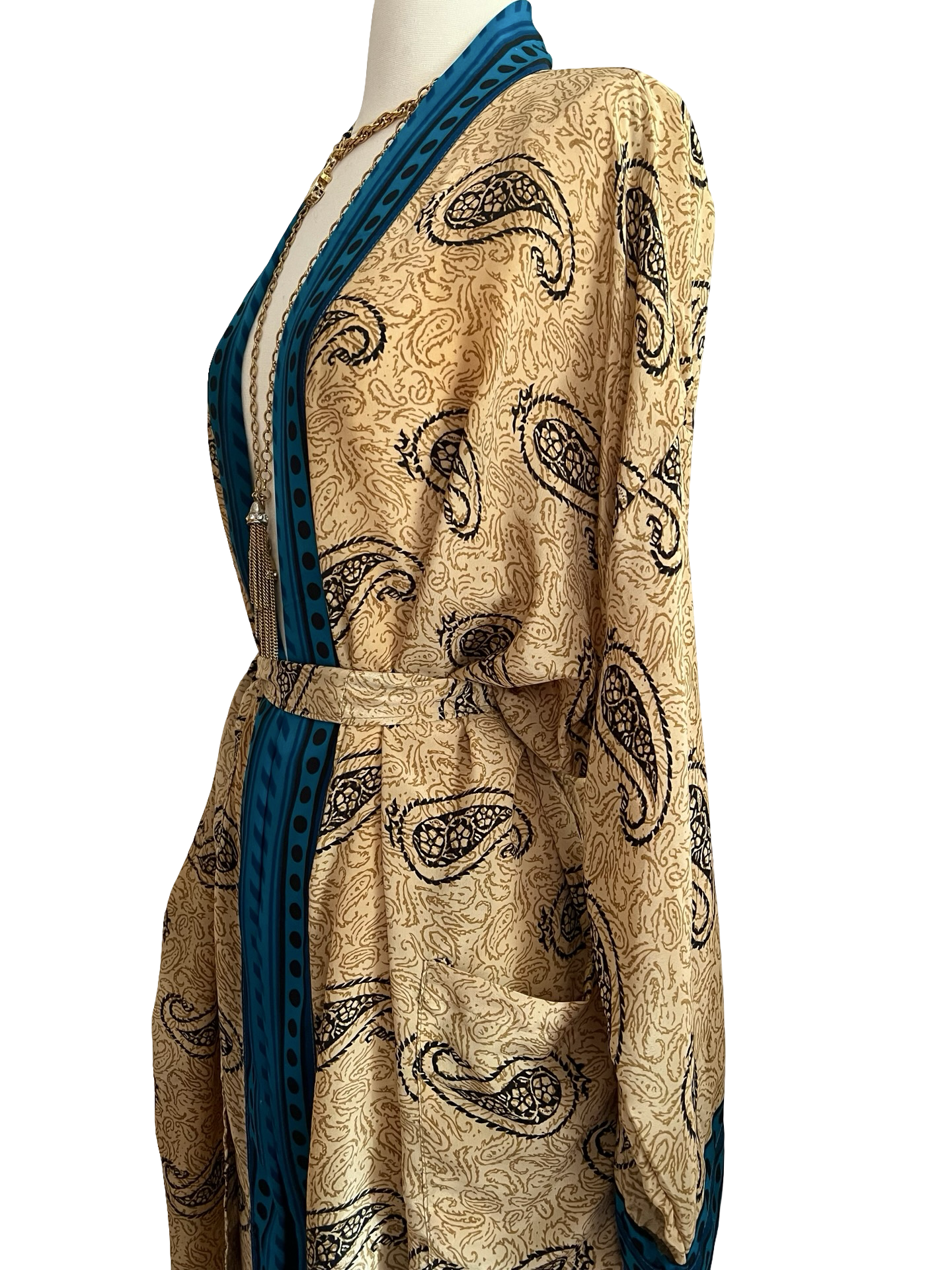 Gorgeous, glamorous Vintage recycled silk from India. Repurposed into modern Kimono inspired Loungewear.