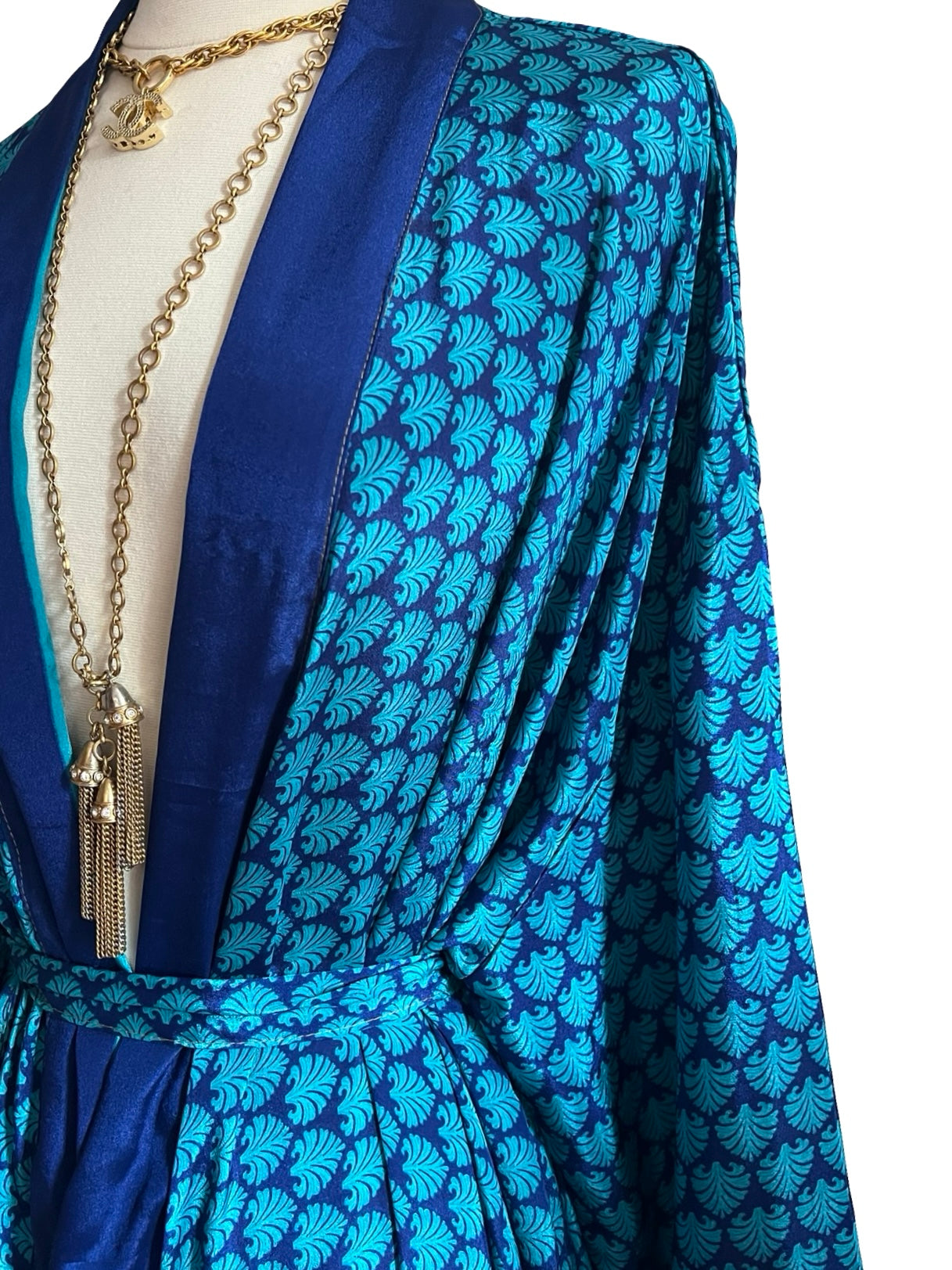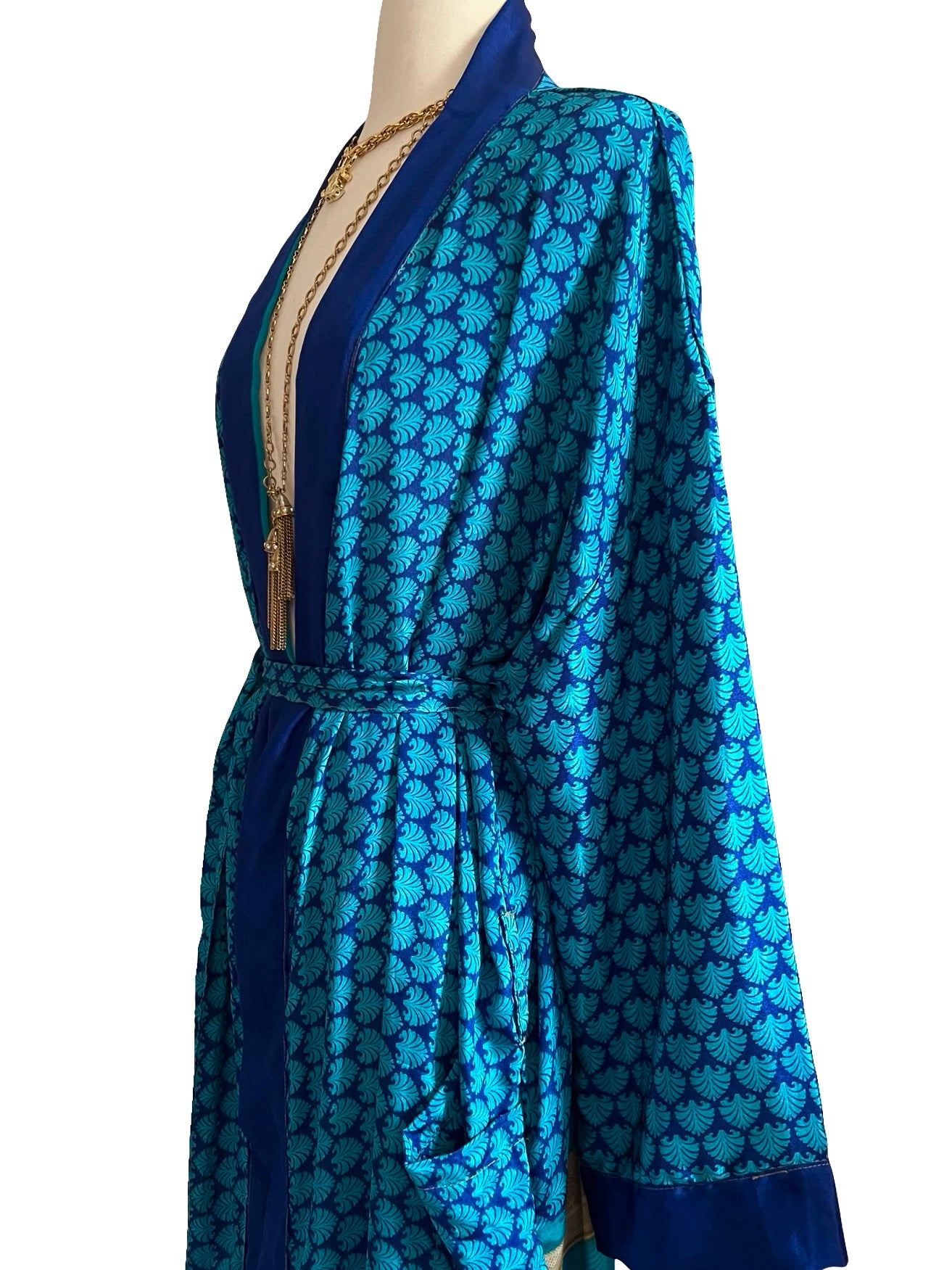 Gorgeous, glamorous Vintage recycled silk from India. Repurposed into modern Kimono inspired Loungewear.