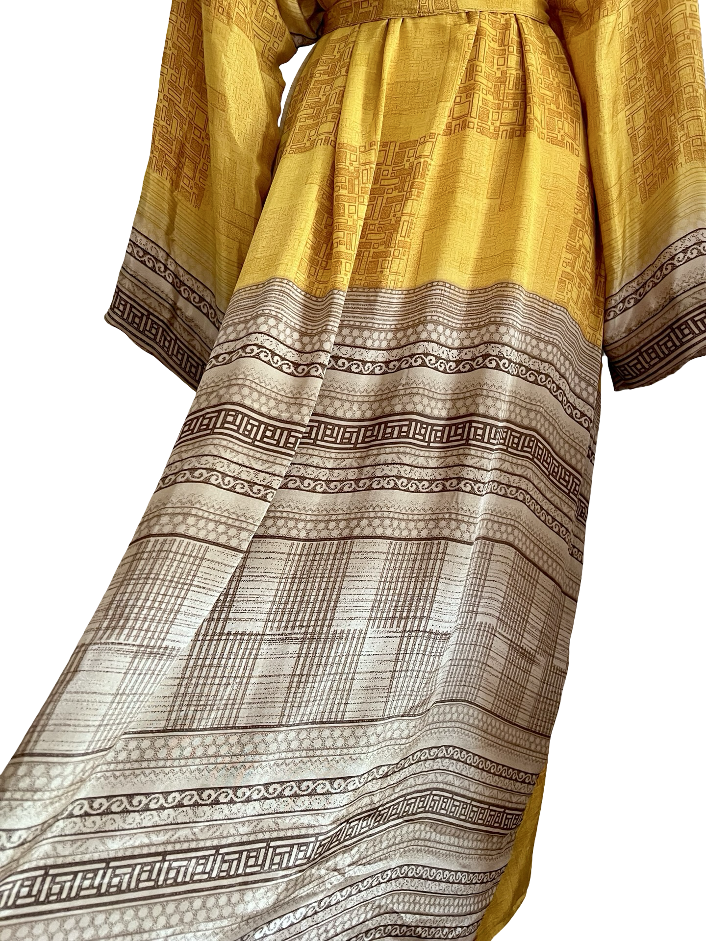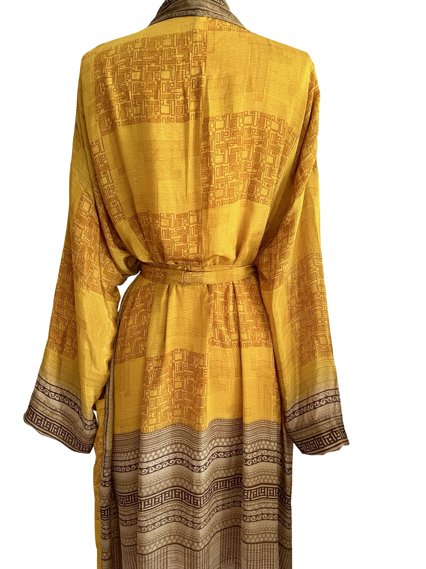 Gorgeous, glamorous Vintage recycled silk from India. Repurposed into modern Kimono inspired Loungewear.