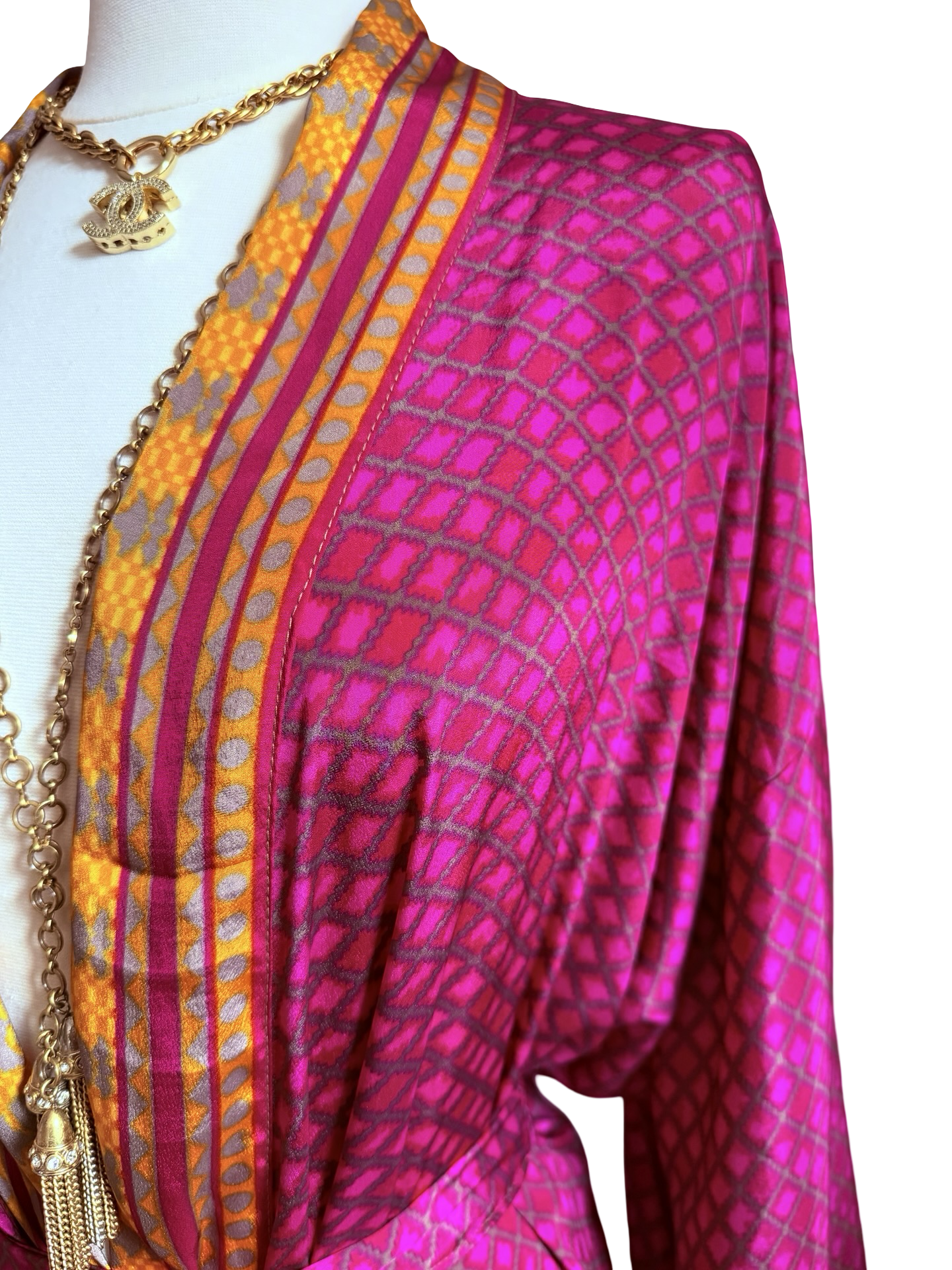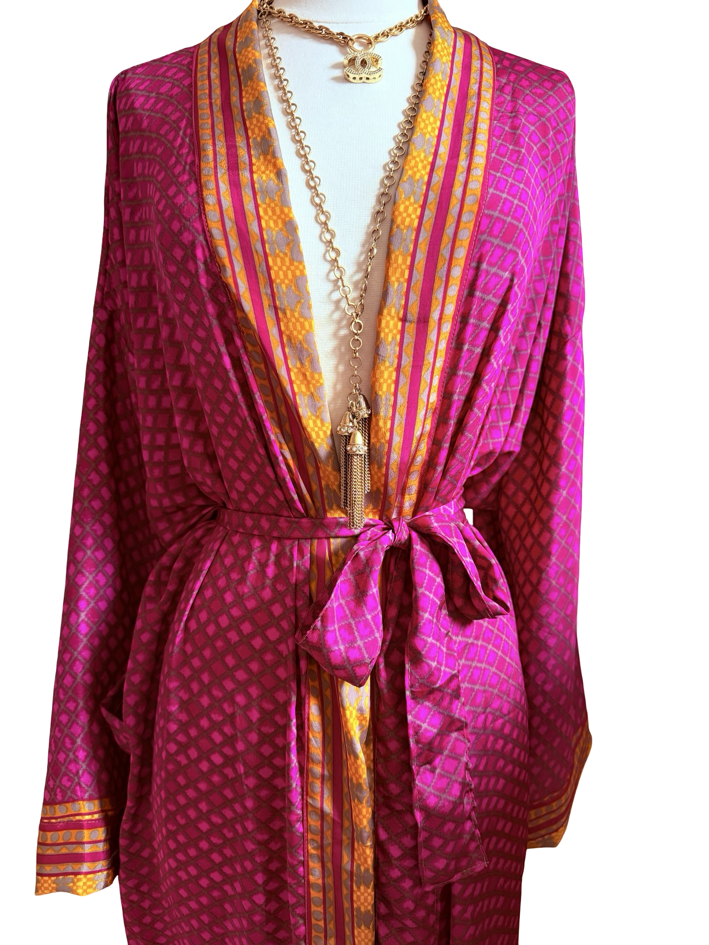 Gorgeous, glamorous Vintage recycled silk from India. Repurposed into modern Kimono inspired Loungewear.