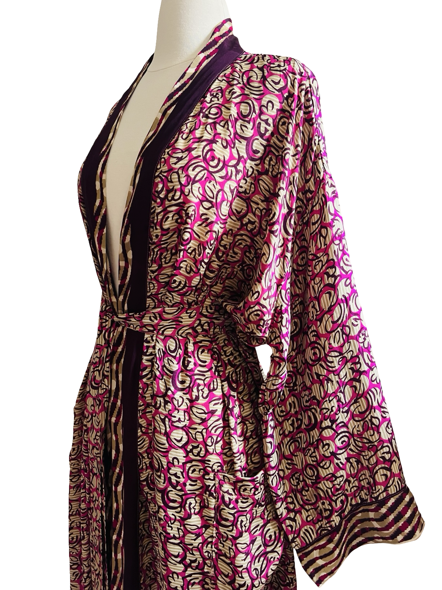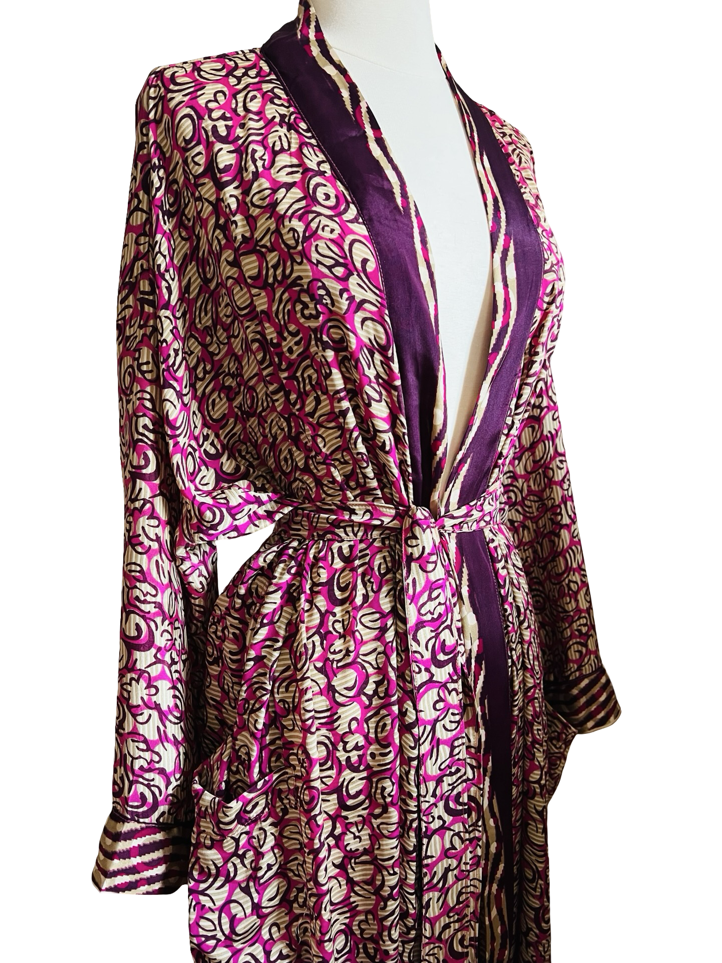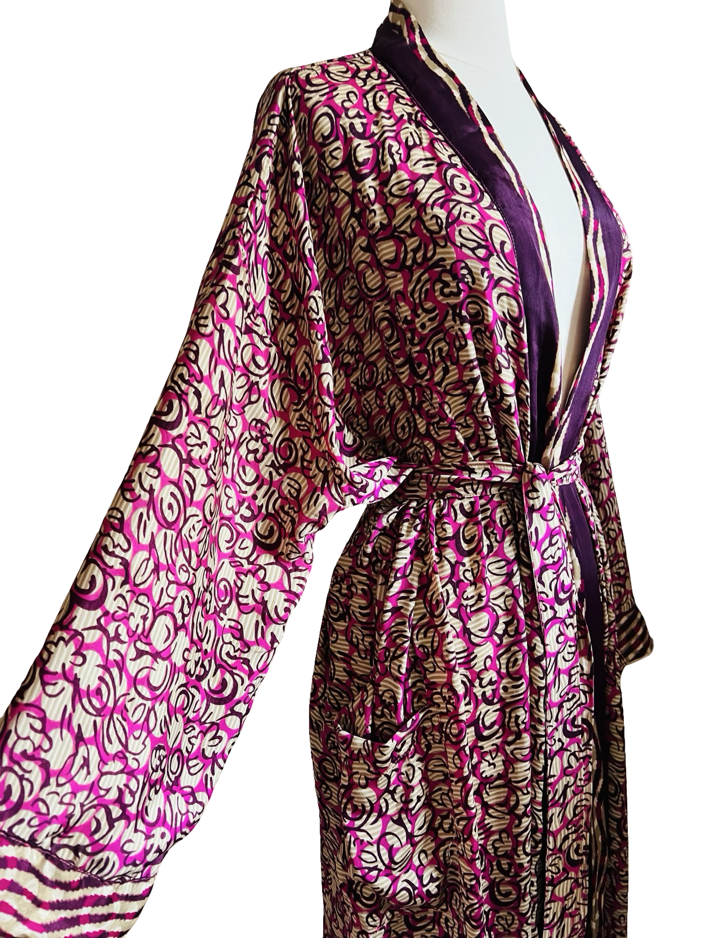 Gorgeous, glamorous Vintage recycled silk from India. Repurposed into modern Kimono inspired Loungewear.